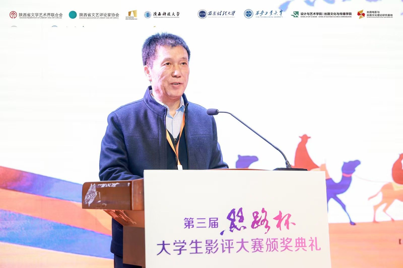 刘发林首先对获奖同学和指导教师表示热烈祝贺,同时对承办本次颁奖典礼的陕西科技大学表示衷心感谢。他指出,此次丝路杯全国大学生影评大赛是西安工业大学首次与陕西省文联、兄弟院校联合举办的国家级赛事,这对提升学校影响力以及提高人才培养质量具有重要意义。他希望,相关兄弟院校能够进一步拓展交流平台,深化在文化领域的合作互动,共同为文化传播与文艺评论人才培养发挥高校作用。