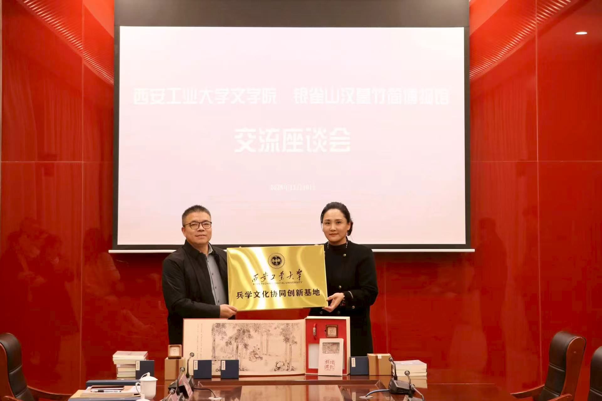 随后,双方共同签署战略合作协议,正式揭牌成立“西安工业大学兵学文化协同创新基地”。该基地将依托银雀山汉墓竹简博物馆深厚的文物资源与学术积淀,结合西安工业大学在跨学科研究、高层次人才培养与技术整合方面的优势,致力于打造集学术研究、文化传承、兵学遗产诠释、社会服务与人才培养于一体的高水平协同创新平台。