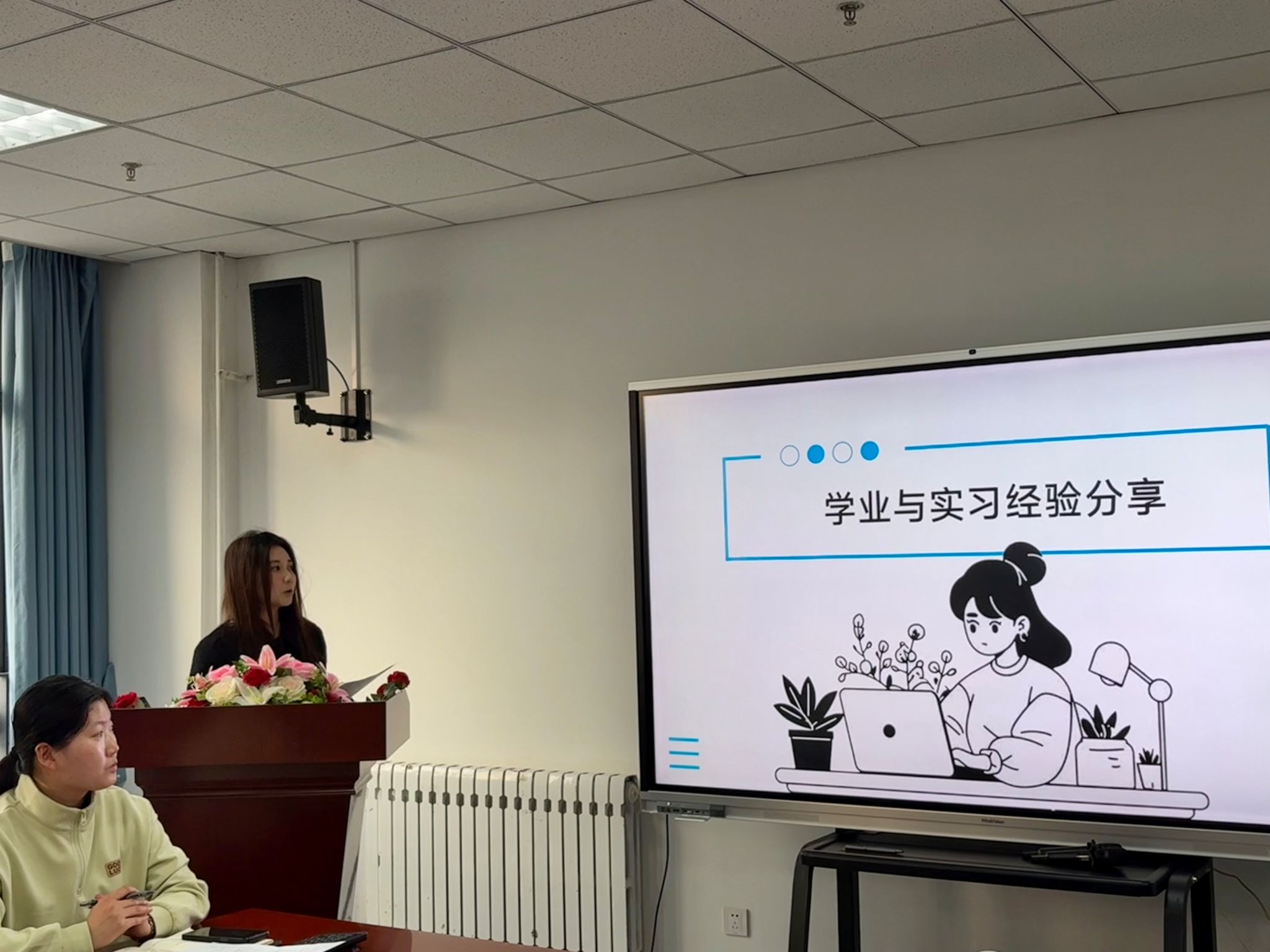 在教9-320会议室举办了主题为“智能媒体时代新传学子的机遇、困境与突破”的学术沙龙活动。本次活动由研究生辅导员张春主持,研究生代表刘鑫、徐媛诺和刘溢担任主讲嘉宾,陈红老师作为点评嘉宾。副院长敬晓庆参加此次活动并进行点评。