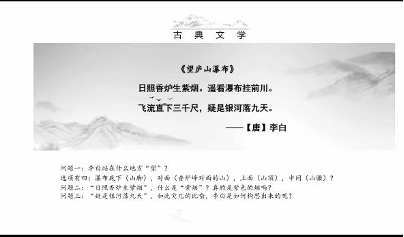 讲座中,王伟以《望庐山瀑布》《登鹳雀楼》《静夜思》等耳熟能详的经典诗作为案例,指出诗歌鉴赏应跳出单一框架,从文化语境、文献考证、文本流变等多维度展开。他从道教文化视角审视李白《望庐山瀑布》,“紫烟”意象被赋予了新的内涵;从文献考辨角度,深入浅出地分析了《登鹳雀楼》的作者归属及《静夜思》版本演变,层层拆解诗歌的艺术密码与文化内涵,并概括出古典诗歌鉴赏的四要素:即文化语境、文献溯源、文本细读及批判性学术思维。